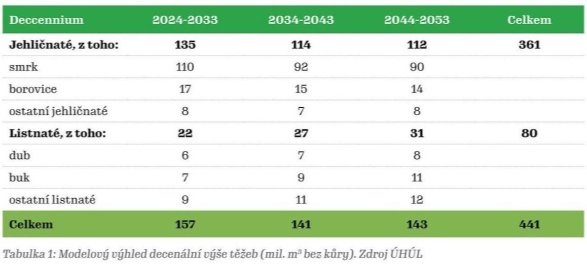 Jaký je předpokládaný vývoj těžby dřeva v ČR?